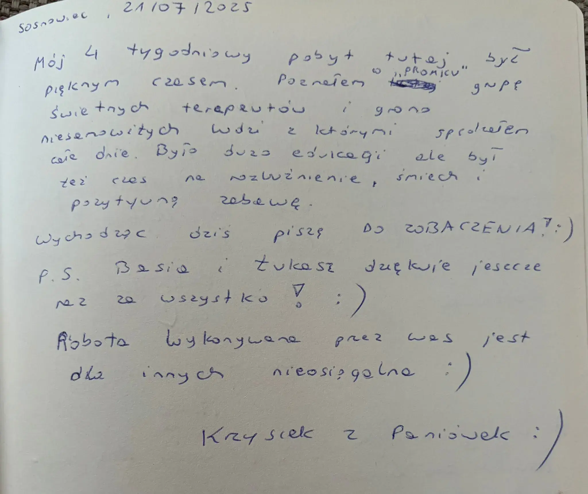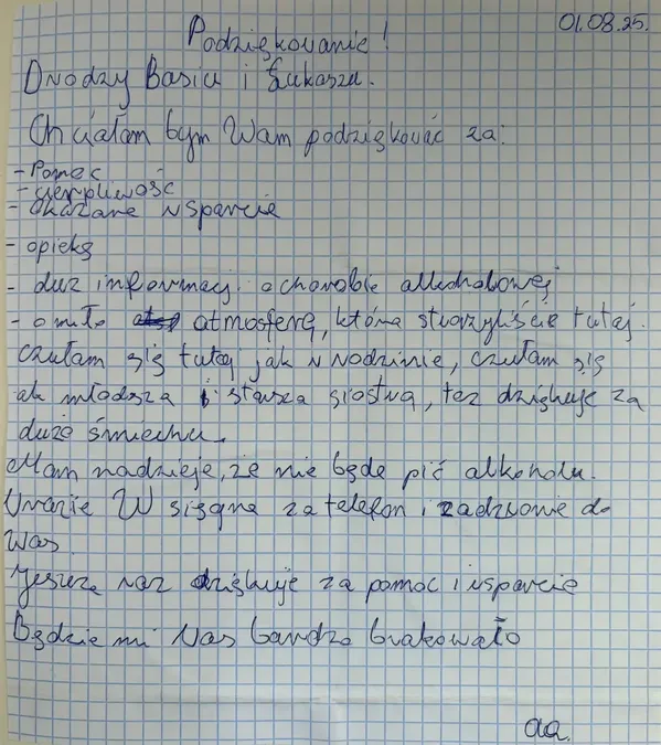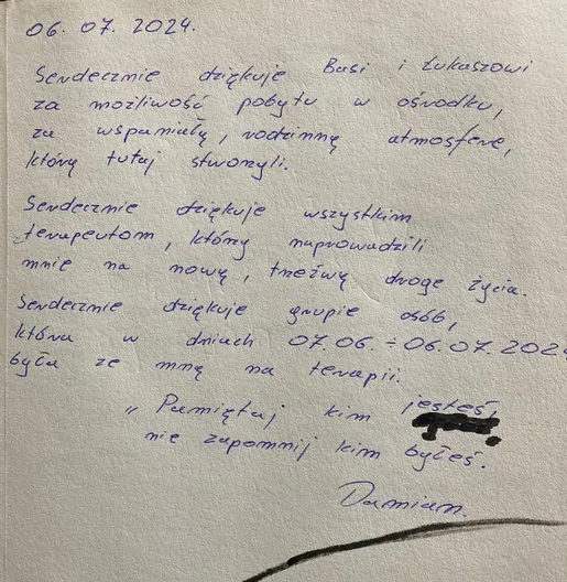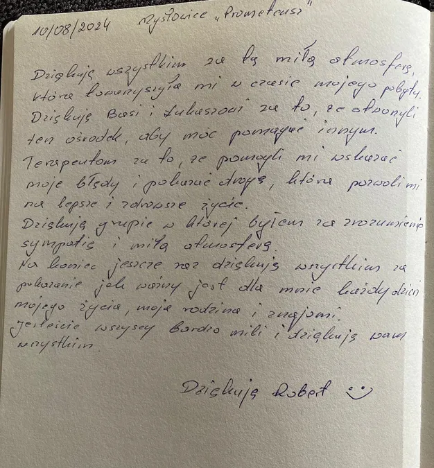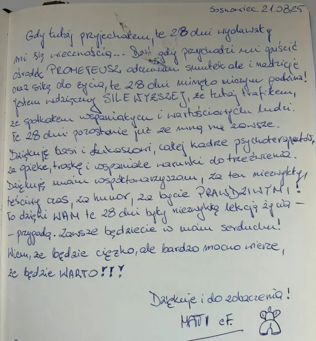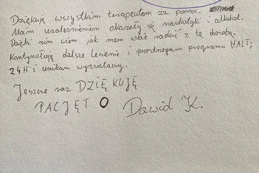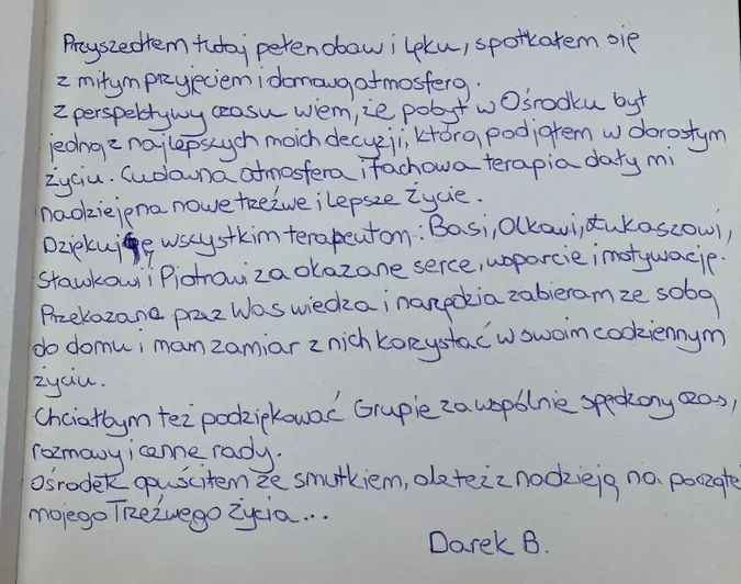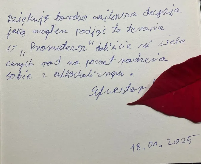 W naszej Kronice znajdziecie wzruszające wspomnienia, podziękowania i osobiste refleksje pacjentów, którzy postanowili podzielić się swoją drogą do zdrowia i wolności. Te wyjątkowe zapisy są dowodem na to, że każdy krok w stronę życia bez uzależnień jest możliwy. Zapraszamy do lektury – niech słowa wsparcia i wdzięczności staną się inspiracją dla tych, którzy dopiero rozpoczynają zmianę.