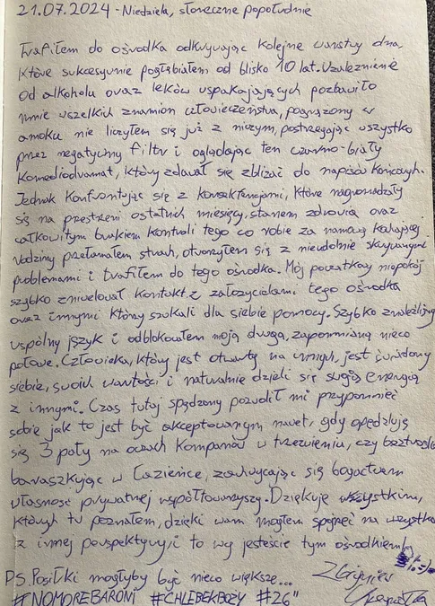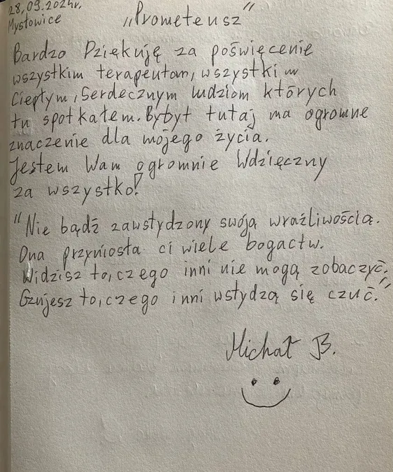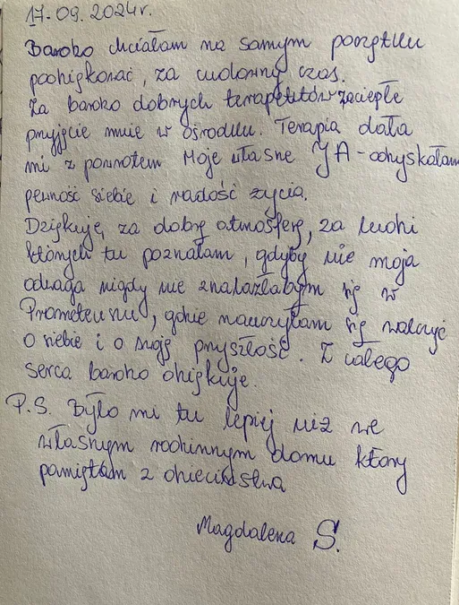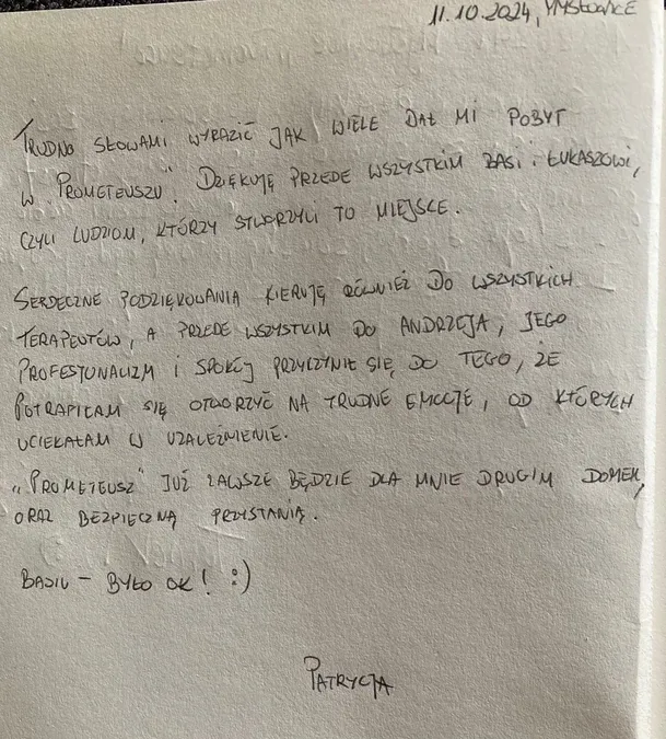 Kronika – autentyczne historie, wzruszające relacje i podziękowania, które napływają od osób, dla których Ośrodek Prometeusz stał się ważnym przystankiem na drodze do wolności od nałogu.